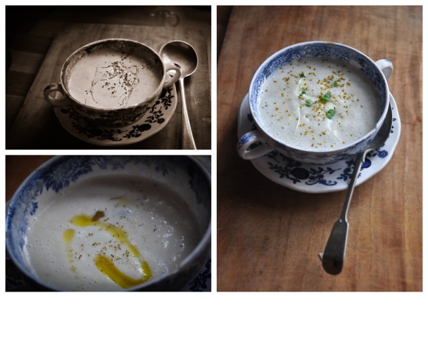 I have always been a fan of using the flower heads of fennel and dill in my cooking but had never thought about just using the dry pollen which has the really pure, intense flavour of its plant. Having virtually mugged the postman for them this morning (and scaring an elderly neighbour who was just posting a Christmas card through our letterbox) I fancied a Jerusalem Artichoke veloutè as the experimental vehicle as I wanted to play around with some other ingredients too. I decided upon the following core: Jerusalem Artichoke veloutè, Sweet Chestnut Honey, Truffle oil, the Fennel and Dill pollens.