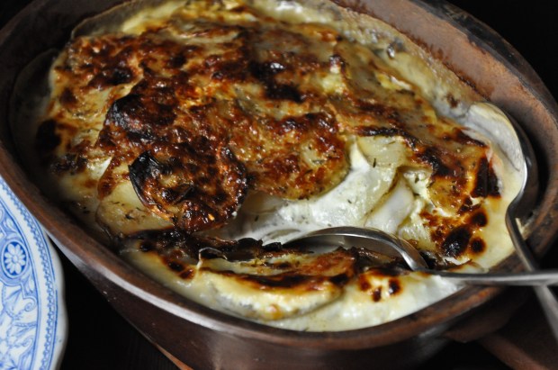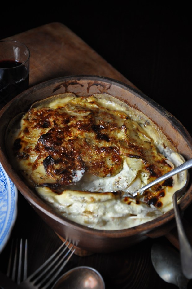 This is not a traditional dauphinois, it’s just been adjusted to for our tastes. I know it’s really naughty so my concession is to use Elmlea 50% reduced fat double cream, yeah I know that’s like people ordering a huge takeaway meal and having a Diet Coke on the side but I don’t care! Garlic powder is something I also love. I use it in so many dishes, sprinkled on homemade oven chips/roast potatoes it gives a sweet garlicky taste without any bitterness or harshness and you control exactly how much you use as its in such a fine powder form. We have our own chickens that are ex-battery farm girls so we use a great deal of eggs, the yolk in this recipe just adds that extra bit of luxury. I never peel my potatoes for this as apart from their being so much goodness in the skin I just like it that way, I prefer waxy but it’s entirely up to your preference. My oven is really quite rubbish (actually its a bloody nightmare) and temperature fluctuates massively so the timings are what works for me.