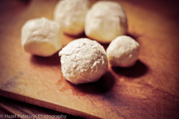 So now I had my beautiful cheeses I needed some pizza dough to showcase them on. I made a batch of plain and polenta flour dough using 650ml of the leftover whey. I hadn’t intended to use polenta flour but I hardly had any other flour so substituted it in and from now on I will always do this as it was amazing! It was about 1/3 polenta and made for a beautiful golden dough with great texture. Fingers were crossed whilst the pizzas cooked that the mozzarella behaved as it should…