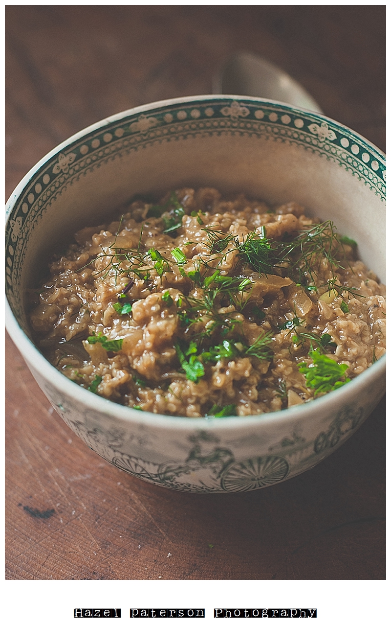 Skirlie is a Scottish dish, I’ve turned it into a kind of oat risotto, it really is ace, you just need to track down that elusive pinhead oatmeal!