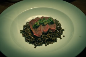 So last Saturday I headed off to Cambridge to meet up with Alex from Sous Vide Tools at the Steamer Trading Cookshop where he was running demos of the Thermo Circulator that I was going to be receiving. I told Alex about my “Steak from Hell” experience and he perked up: “Wait until you try this bit of bavette that’s been cooking for 29 hours” he said. Oh god, I thought, here we go again. Then, I tasted it. Oh, actually that’s beautifully tender with great texture and still pink, not tasteless mush AT ALL, and bavette, also known as flank steak is a really tough cut. Hmmm OK hit me with your next bit of wizardry Alex.